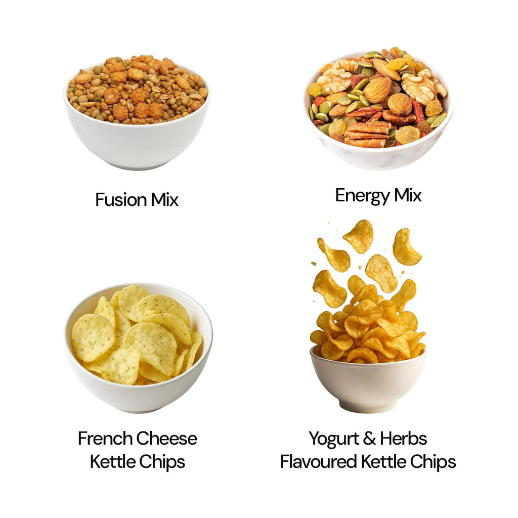 This combo offers a carefully curated selection of savory and nutritious snack options. This pack includes 250g each of Cheese Chips and Yoghurt Chips, delivering satisfying flavors with a crunchy texture. Complementing these are 250g of Fusion Mix and 250g of Energy Mix, both designed to provide a balanced combination of nutrients and sustained energy. This combo is ideal for those seeking diverse snacking choices that support an active and health-conscious lifestyle.